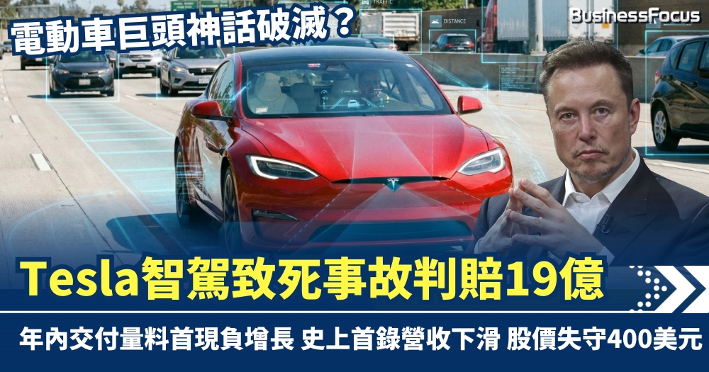 電動車巨頭神話破滅?Tesla智駕致死事故判賠19億 年內交付量料首現負增長