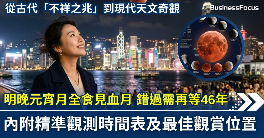 當元宵佳節遇上罕見天象,明晚(3月3日)香港上空將上演極為難得的「月全食」奇觀,此乃本世紀內僅有 3 次「元宵逢月全食」的其中之一,亦是未來兩年內最後一次全港可見的紅月亮(血月)。若錯過明晚,下一次想要在香港的元宵夜觀賞這場「血月」盛宴,需等待至 2072 年!