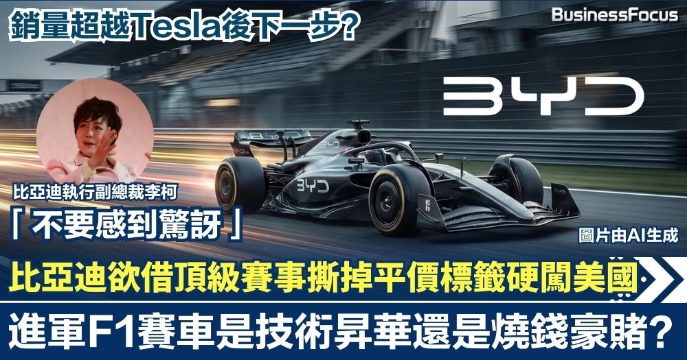 銷量超越Tesla後下一步?比亞迪傳進軍F1賽車 欲借頂級賽事撕掉平價標籤硬闖美國 是技術昇華還是燒錢豪賭?【 @businessfocus.io 】【#BF社會熱話】