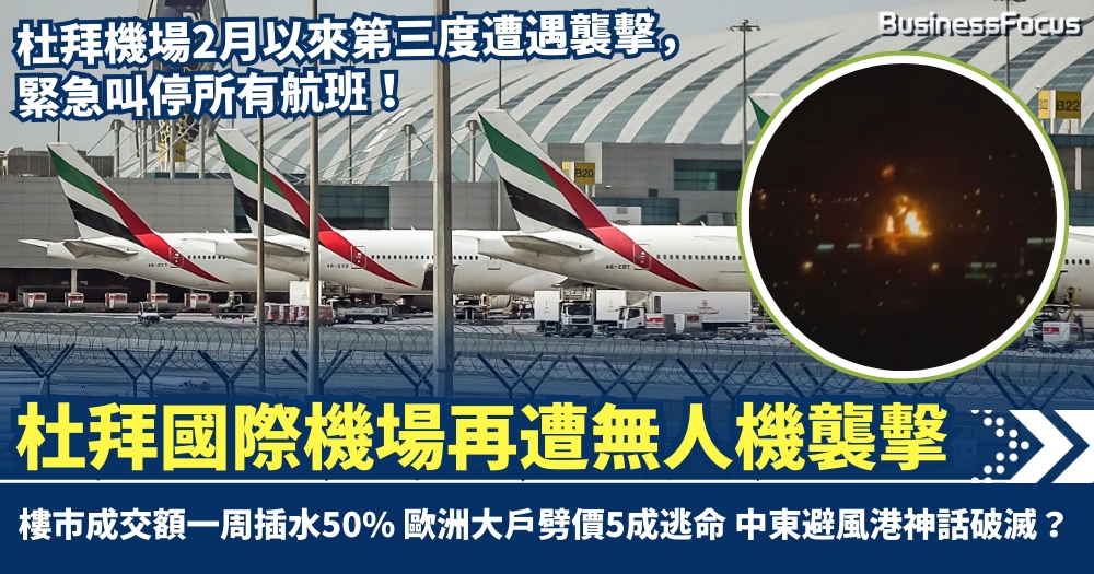 杜拜國際機場再遭無人機襲擊 油庫中彈起火!樓市成交額一周插水50% 歐洲大戶劈價5成逃命 中東避風港神話破滅?