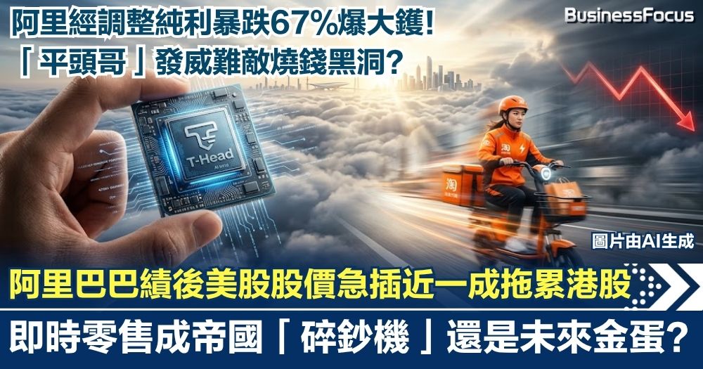 阿里經調整純利暴跌67%爆大鑊!績後美股股價急插近一成拖累港股  「平頭哥」發威難敵燒錢黑洞?即時零售成帝國「碎鈔機」還是未來金蛋?