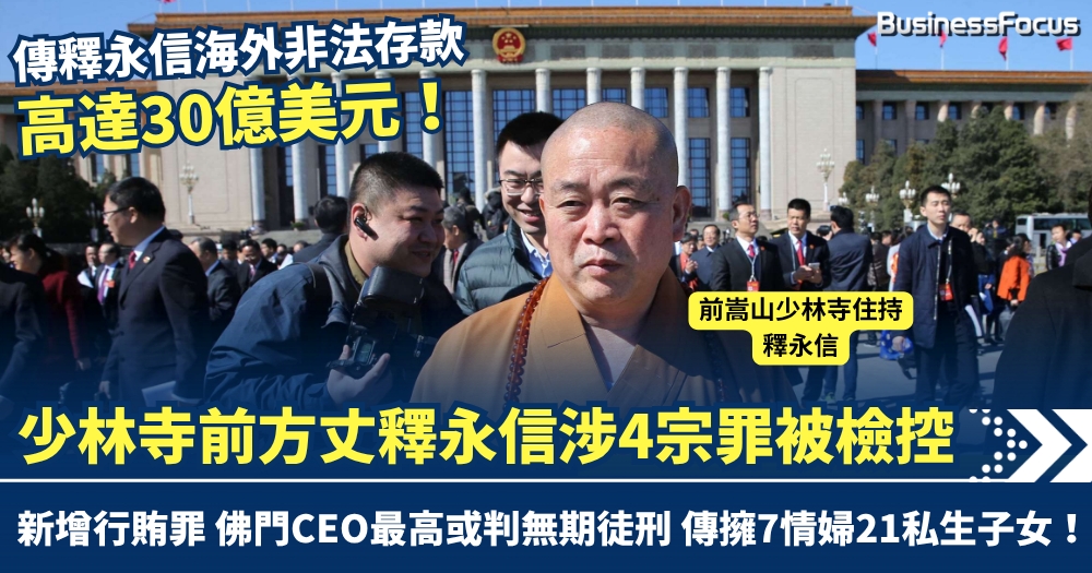少林寺億元IP淪家族金庫? 前方丈釋永信涉4罪被公訴 傳貪污30億美元擁7情婦21私生子 昔日佛門CEO或判無期徒刑