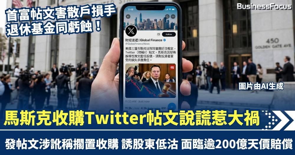 涉謊稱暫時擱置收購Twitter帖文釀大禍 馬斯克一審敗訴 或面臨逾200億天價賠償