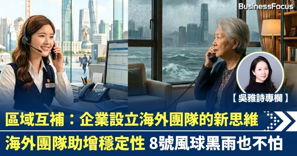 【吳雅詩專欄】區域互補:企業設立海外團隊的新思維 海外團隊助增穩定性 8號風球黑雨也不怕