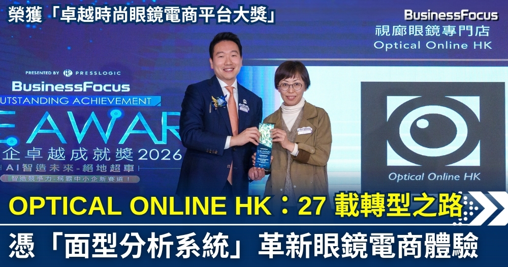 在眼鏡行業深耕逾 27 年的 OPTICAL ONLINE HK(視廊眼鏡專門店),近日於第三屆「BusinessFocus 中小企卓越成就獎」中脫穎而出,榮獲「卓越時尚眼鏡電商平台大獎」。品牌從早期的實體零售到今日跨境電商的蛻變,成功展示了傳統行業如何透過「技術研發」與「精準行銷」完成數碼轉型。