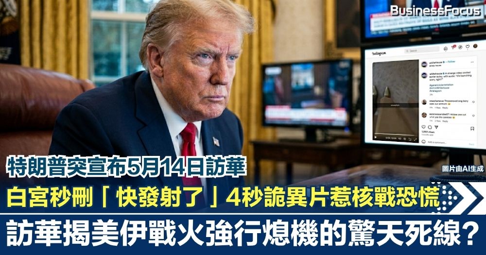 白宮官方社交媒體突發神秘短片,一句女聲「快要發射了,對吧?」瞬間引爆全球恐慌與核戰猜疑 。官方火速刪片更令事件添上濃厚陰謀色彩 。回顧美軍早前竟將轟炸伊朗畫面配上任天堂遊戲音效,遭猛烈抨擊「把打仗當打機」 。同時,美國總統特朗普震撼宣布將於5月14日至15日訪華 。兩大重磅消息交疊,外界不禁揣測,神秘短片究竟是黑客惡作劇,還是毀滅性戰前的最後預告 ?五月的元首會晤,又是否暗示著中東戰火必須在期限前強行劃上句號 ?