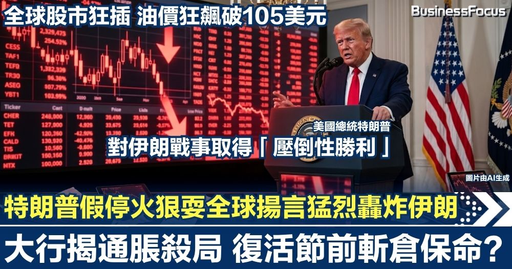 特朗普「假停火」狠耍全球揚言猛烈轟炸伊朗 !全球股市狂插油價狂飆破105美元 大行揭通脹殺局 復活節前斬倉保命?
