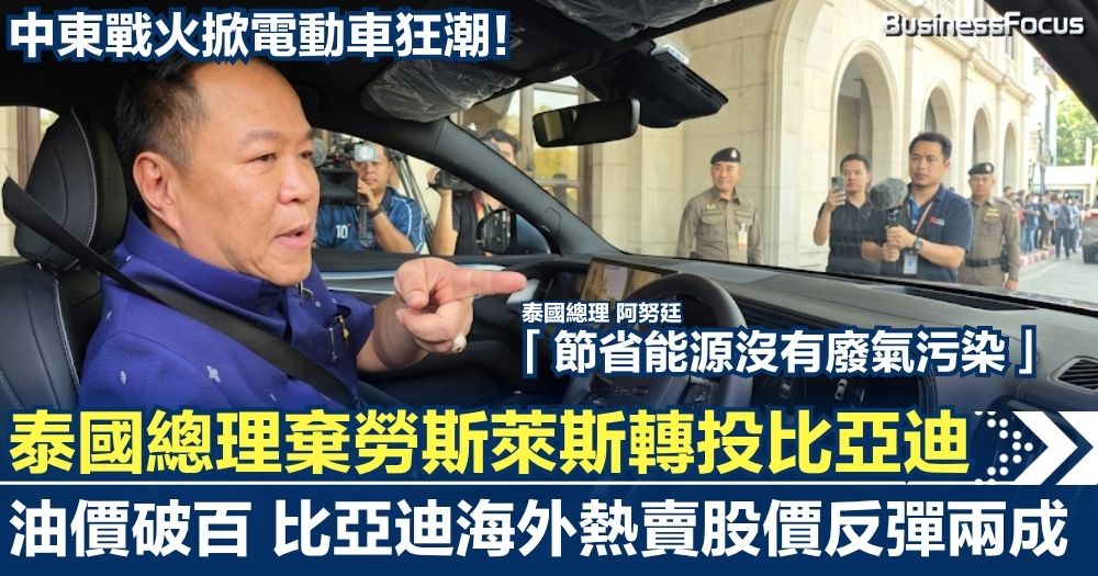 【中東戰火掀電車狂潮】泰國總理棄勞斯萊斯轉投比亞迪!油價破百成最強催化劑 比亞迪海外爆賣股價反彈兩成