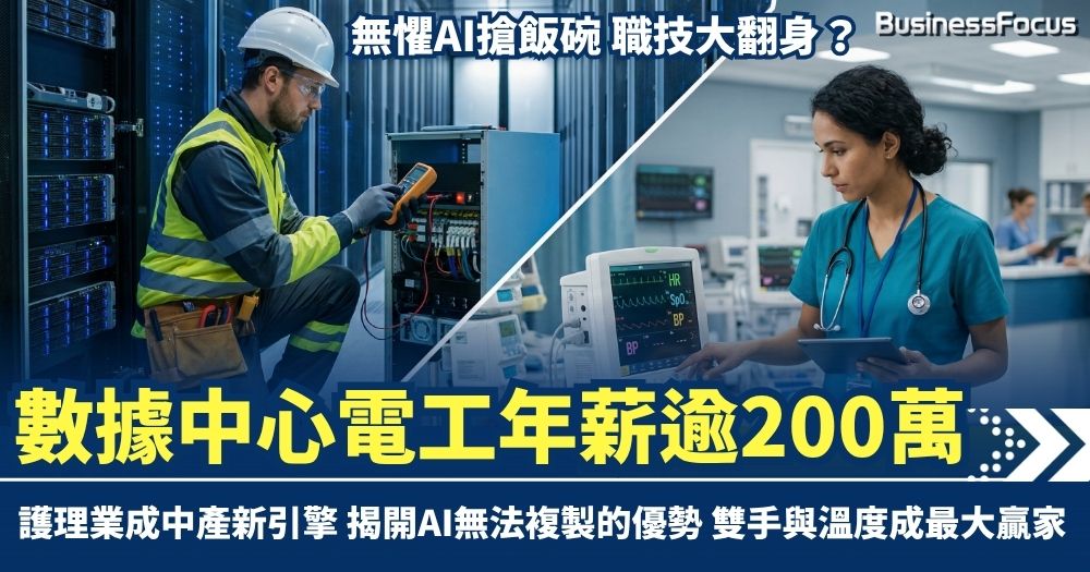 AI衝擊職場,白領人人自危,但誰說藍領與技術人員只能「捱世界」?從數據中心機房到醫院病房,一場由科技與人口結構驅動的高薪挖角戰正酣。數據中心電工因極度稀缺,年薪高達26萬美元(約202萬港元),跨產業爭奪激烈,業界形容為「如MLB選秀」般瘋狂;護理人員則靠AI無法複製的「溫度」,年薪穩破六位數美元。難道未來最「鐵飯碗」,竟是這些手藝與人心?