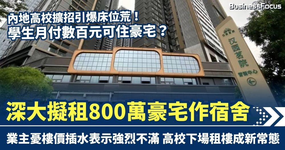 內地高校擴招引爆床位荒!深大擬租800萬豪宅作宿舍 學生月付數百元可入住? 業主憂樓價插水