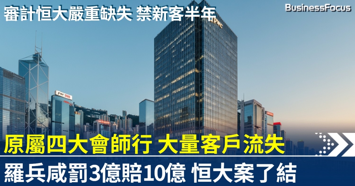 羅兵咸永道(PwC)因中國恒大(03333)財務造假案遭香港監管機構重罰。會計及財務匯報局處以3億港元罰款及半年執業限制,證監會亦與羅兵咸達成協議,預留10億港元賠償合資格少數股東,合計涉及金額達13億港元。兩名前註冊負責人合共被罰1,000萬港元,為香港審計行業歷來最重磅的處罰。
