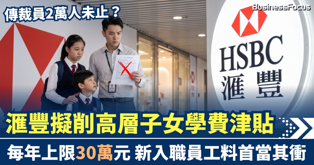 傳裁員2萬人未止? 滙豐擬削香港高層子女學費津貼 每年上限30萬元 新入職員工料首當其衝