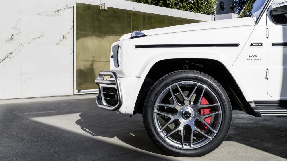 延續了G-Class外型方正的「盒子」輪廓設計,AMG G63只有在細節做出調整。全新世代的G63捨棄了舊款5.5L引勤,繼續搭載4.0T V8引勤,最大馬力達577hp,最大扭力達850Nm,搭配全新AMG Speedshift TCT 9速手自排變速箱,而0-100 km/h加速僅需4.5秒,較舊款的G63快了近1秒之差,若選配AMG駕駛套件,極速限制則能達到240 km/h。