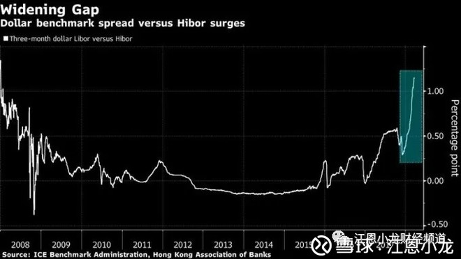 美國加息定必令到港匯很快觸及7.85的弱方兌換保證,因爲LIBOR跟HIBOR的差異會更加拉大,套息會更加勁。代表歐洲美元拆款利率的三個月期 LIBOR,與同期港元拆款利率 HIBOR 兩者利差,在近期是出現急劇擴大,創下了自 2008 年以來的新高水平,顯示了市場對于 Fed 的升息預期,已是快速加深。