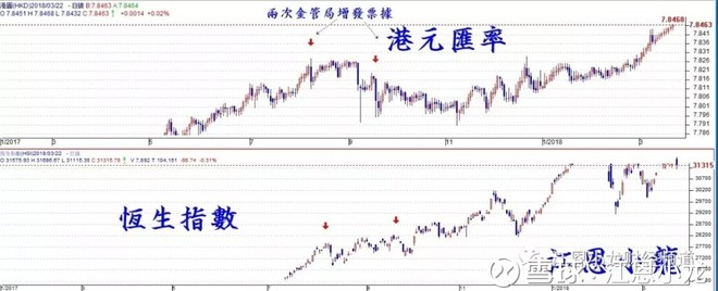 從下圖可見,2017年8月及9月金管局出手增發票據後,令到恒指出現幾百至千點的跌幅。而我預期港匯到達弱方保證觸發金管局出手的時間可能是3月23日或清明前後。