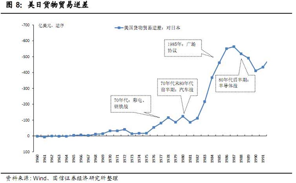 由紡織品,汽車,家電等,每次日本都不敢說不。那是當然,始終美國在日本駐軍。事實上即使廣場協議之後,日本對美的貿易易差從來沒有减少過。明顯如筆者所講「醉翁之意不在酒」。