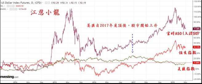 2年期美債息相對10年期債息的差距已收縮至43點子,爲2007年以來最窄,一旦繼續收縮並出現「倒掛」情况,恐是經濟在1至2年內衰退的先兆。同時聯儲局於6月12至13日議息會議後决定加息,最新聯邦基金利率期貨市場顯示,市場預估聯儲局6月進一步加息的可能性高達百分之一百。一旦加息,或會推升美元及美債債息,或會令新興市場走勢壓力更大,或會令到股市再一次大跌。香港過去的升市是靠全球的資金推動,港幣亦有一定走弱亦表示了一定程度美元走强的影響,香港銀行體系結餘水平目前已經回到QE1前後的水平,熱錢流走令到金管局過去一個月接了五百億的熱錢。2017年的升市筆者曾提出2017年是因爲美匯指數跌,人民幣升,港元走弱,即表示手持人民幣的投資者買港股是「打折」,而且本身AH股已經有差價,所以「折上折」。美匯指數與恒指的相關係數高達約-90%,所以一旦美匯指數上升,那股市將可能因此而回調。