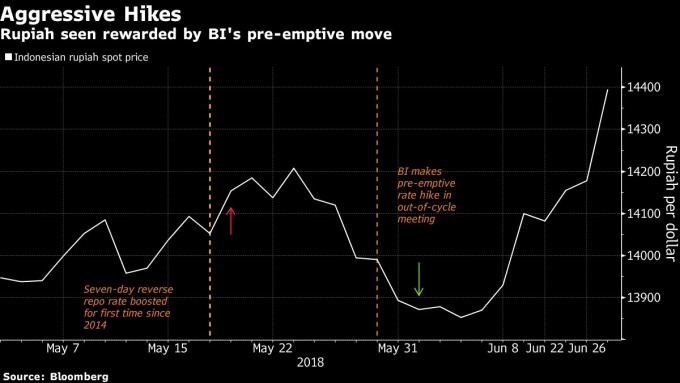 爲了捍衛本土貨幣,新興國家央行被迫加息以穩定匯率。美國聯準會升息、强勢美元、油價走升以及對全球貿易戰的擔憂,皆使新興市場承受更多壓力。如印尼央行在 5 月的兩周內進行了兩次升息,但由於美國和中國的貿易緊張局勢不斷升溫,印尼盾再次承受壓力,在 28 日跌至自 2015 年 10 月以來的最低點,29 日暫報 1 美元兌 14377.6 印尼盾;菲律賓央行將利率上調至 3.5%,仍難阻止貨幣貶值頽勢,菲律賓披索兌美元跌至 12 年以來最低點,29 日暫報 1 美元兌 53.4130 披索;阿根廷央行在 5 月初將基準利率上調至 40%,共升息達 1275 個基點,以支持暴跌的阿根廷披索,但支撑力道仍然有限。