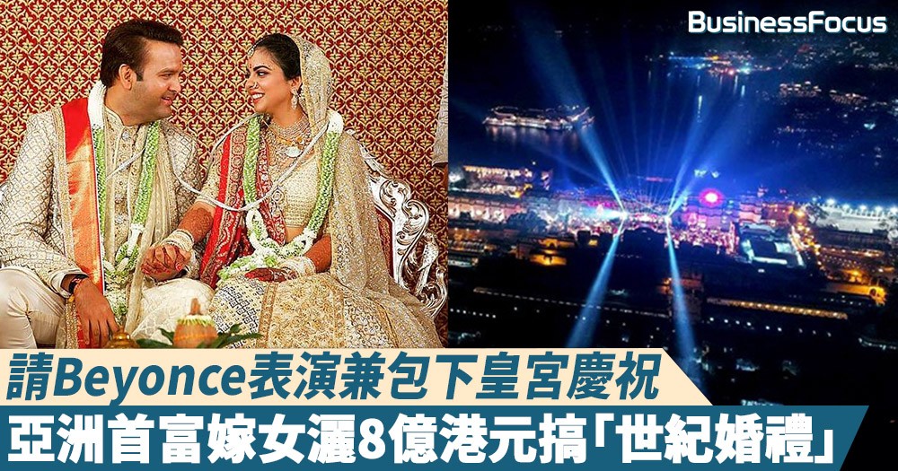 不久前擊敗馬雲成亞洲首富、印度最大財團「信實工業」掌舵人安巴尼(Mukesh Ambani)的千金伊莎(Isha Ambani)本周三出嫁,與同為出身豪門的皮拉莫(Anand Piramal)共諧連理。由於該對新人均出身名門世家,故這場世紀婚禮亦搞得「有聲有色」,活動為期不但長達1周,且出席賓客均為政商名流,而開支更高達1億美元(約7.8億港元)。